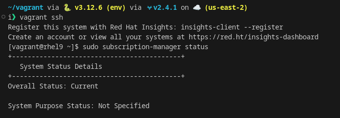 vagrant sshsudo subscription-manager status